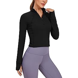 $89.99 (as of 02/04/2026 16:29 GMT +07:00 - More infoProduct prices and availability are accurate as of the date/time indicated and are subject to change. Any price and availability information displayed on [relevant Amazon Site(s), as applicable] at the time of purchase will apply to the purchase of this product.)CRZ YOGA Women's Butterluxe Long Sleeve Workout Shirts Half Zip Pullover Sweatshirt Athletic Cropped Tops Running Jacket