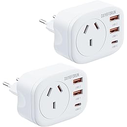 $34.44 (as of 02/04/2026 14:58 GMT +07:00 - More infoProduct prices and availability are accurate as of the date/time indicated and are subject to change. Any price and availability information displayed on [relevant Amazon Site(s), as applicable] at the time of purchase will apply to the purchase of this product.)DAYEFORUN AU to EU Travel Adapter, 2 Pack Europe Travel Adaptor, Bali Travel Adapter with 3 USB Ports, Travel Plug for AUS to Most of Europe Germany Spain France Greece Netherlands Turkey, Type C