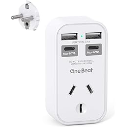$19.99 (as of 02/04/2026 16:29 GMT +07:00 - More infoProduct prices and availability are accurate as of the date/time indicated and are subject to change. Any price and availability information displayed on [relevant Amazon Site(s), as applicable] at the time of purchase will apply to the purchase of this product.)One Beat AU to EU Travel Adapter,Type E/F International Power Adapter with 4 USB(2USB C),European Travel Accessories,European Plug Adapter for Bali Germany Spain France Greece Netherlands Turkey