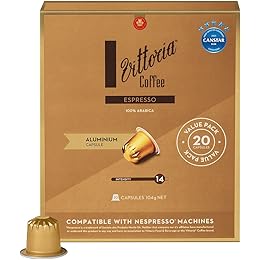 $69.58 (as of 02/04/2026 12:21 GMT +07:00 - More infoProduct prices and availability are accurate as of the date/time indicated and are subject to change. Any price and availability information displayed on [relevant Amazon Site(s), as applicable] at the time of purchase will apply to the purchase of this product.)Vittoria Coffee Espresso 100% Arabica Nespresso Compatible Aluminium Capsules. Best Served as an Espresso or Milk - 20 Pack Pods