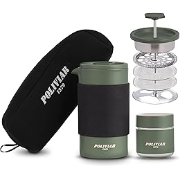 $63.75 (as of 02/04/2026 06:53 GMT +07:00 - More infoProduct prices and availability are accurate as of the date/time indicated and are subject to change. Any price and availability information displayed on [relevant Amazon Site(s), as applicable] at the time of purchase will apply to the purchase of this product.)POLIVIAR French Press Coffee Maker, 12 oz Portable French Press with Mini Canister and Collection Bag, Double Wall Insulation & Dual- Filter Screen, Food Grade Stainless Steel for Coffee