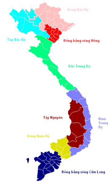 Lãnh thổ Việt Nam có thể chia thành khu vực lớn theo bản đồ Việt Nam hiện đại
